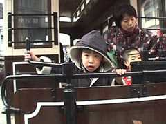 入り口近くにある古い路面電車に乗り込んでハンドルをくるくる回している小僧、今日は特別元気いっぱいです。