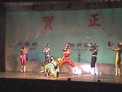 「賀正」の文字をバックに闘うメガレンジャー、かっこよかったのだろうか?敵はもちろん干支のタイガーネジレ(笑)。