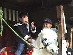 馬小屋には子供のためのポニーがおりまして、小僧は乗せて貰いました。でも乗って写真撮ってハイおしまい、その後スライスされた人参を餌にあげていました。